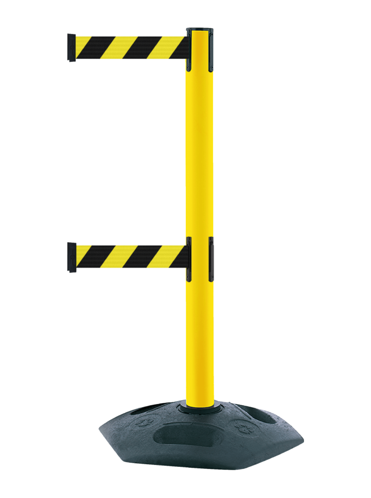 The 886T2 Tensabarrier® Facility post with dual line webbing, contains two lines of retractable webbing. The additional retractable webbing prevents people and children from ducking under the barrier tape to provide a robust saftey barrier system. This stanchion is perfect for indoor or outdoor use and incorporates all the 886 Tensabarrier® facility post safety barrier quality features. When not in use we recommend storing the Tensbarrier® indoors.